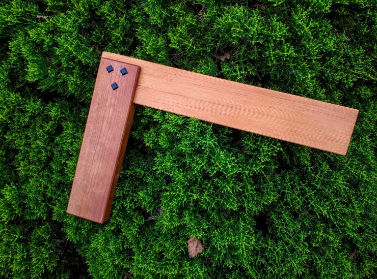 The try square’s handle is a hand-span long while the blade is a third again that length. I use this square for testing and laying out right-angle cuts on furniture components such as rail and stiles and drawer parts.